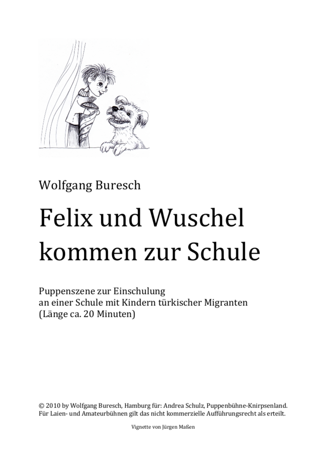 Ein kleines Figurenspiel – von Wolfgang Buresch für Andrea Schulz – zur Einschulung von Migrantenkindern.