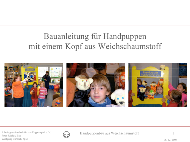 Wir wünschen uns, dass möglichst viele Kinder erfahren wie viel Spaß es macht, eine eigene Puppe zu entwerfen, zu bauen und damit zu spielen. Daher können sich alle Interessierten hier die kostenlosen Bau- und Spielanleitungen herunter laden. Wir wünschen viel Spaß beim Bauen und Spielen zu Hause, im Kindergarten oder in der Schule!